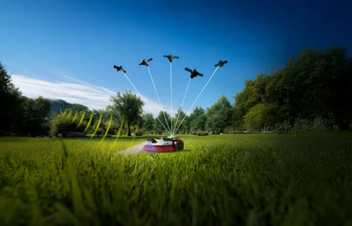 RTK (Real-time kinematic) ger centimeternoggrann positionering via satellit, utan att du behöver installera någon fast antenn på tomten. Roboten vet alltid exakt var den befinner sig.